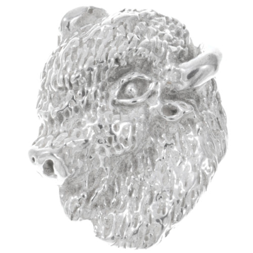 A classic symbol of the American frontier, this Sterling Silver Buffalo Head jewelry part has great detail in the fur. It is a solid heavyweight, with a nice dimensional quality coming up 5-6mm at the highest point. It's 23mm tall by 18mm wide, or about 7/8" tall x 3/4" wide.